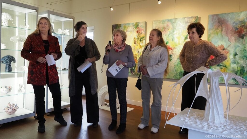 Zondag 8 december openden we de laatste expositie van 2024, in aanwezigheid van de kunstenaars Maria van ’t Hullenaar (papier en porselein), Karin van Leeuwen (keramiek), Irene Keyzer (schilderijen) en Hendrie Sassen (schilderijen en mixed media).