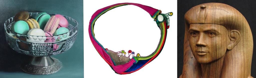 Frans ontwerpt opvallende, speelse, kleurrijke sieraden. Met textiel als basis maakt zij combinaties met mineralen, halfedelstenen en alles wat ze verder vindt in de natuur.